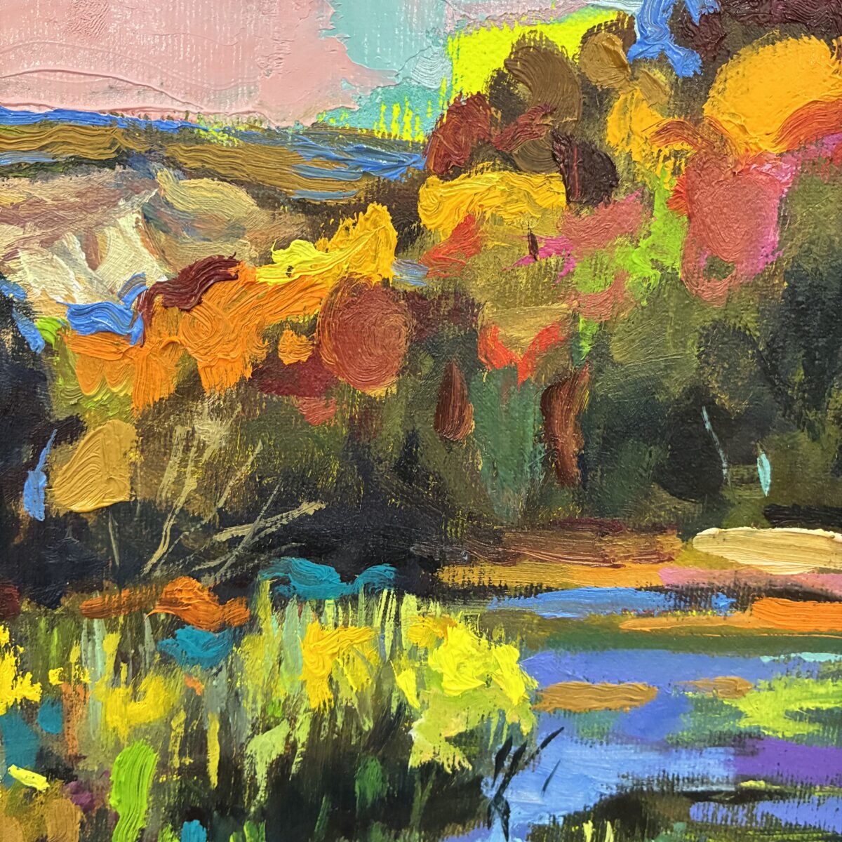 Este camino me llevó a lo que hoy llamo mi “nuevo fauvismo”: una reinterpretación contemporánea del espíritu fauvista, donde la libertad cromática, la intuición y la vitalidad priman por encima del realismo. Como los fauvistas del siglo XX, no pinto lo que veo, sino lo que siento al mirar. Pero lo hago desde una mirada actual, con el uso de pigmentos fluorescentes, juegos de saturación extrema y composiciones que rozan lo abstracto sin abandonar el paisaje. Se vislumbra también la referencia a la infancia como en mis otras obras donde la figura humana y el objeto son los protagonistas, pero en este caso esa nostalgia queda reflejada en la estructura cromática y el juego en la libertad de cada pincelada.